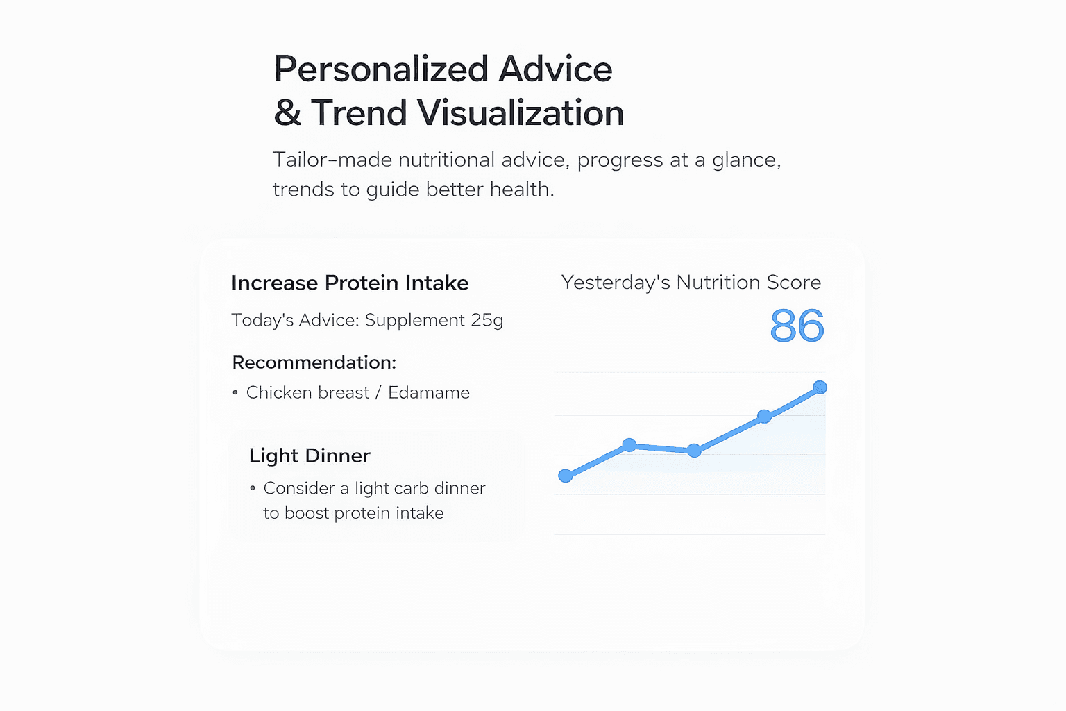 Customized nutrition recommendations at a glance, with trend charts to support better health management.